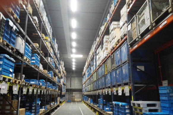 Beleuchtung mit insgesamt 5.400 Watt Nennleistung: 54 Stück LED Hallenleuchten Typ HHL4-100-60-6000 mit je 100W Nennleistung Lichtausbeute ca. 270 Lux am Boden und ca. 300 Lux auf der Arbeitsebene.