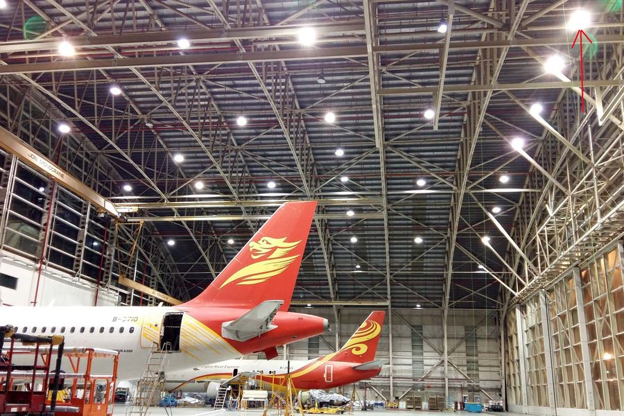 Unterschiedliche Hallenhöhen von 3.0m bis ca. 9.0 m / Leuchtebene vom Boden: ca. 3,0m bis 9,3 m.